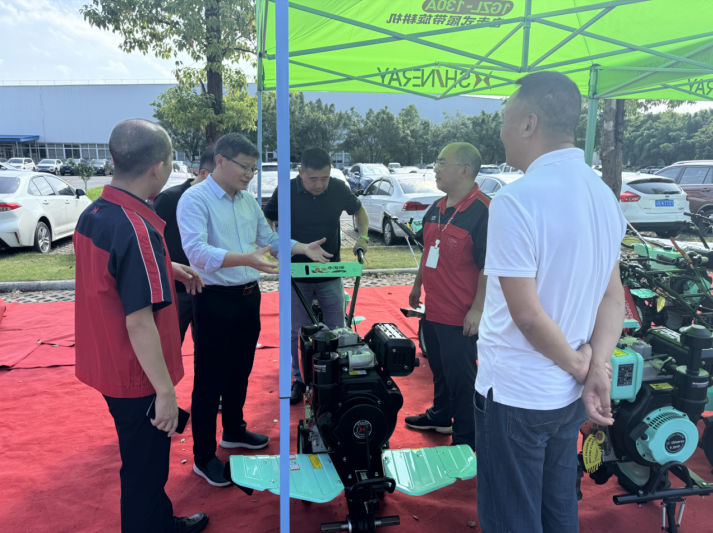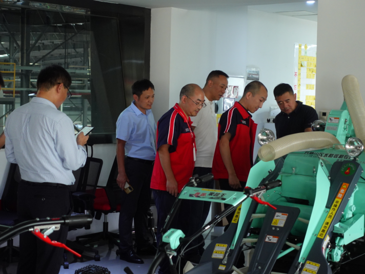專家組一行首先在鑫源農機多媒體中心聽取了鑫源集團企業發展介紹,在黃總的指引下,專家組走到了產品展示區,技術負責人丁小兵向大家分別介紹了我司的小霸王微耕機、田園管理機、鑫源收割機、發電機組、園林草坪機等核心產品。大家邊聽介紹邊仔細打量產品的每個細節,還時不時掏出手機拍照記錄,對鑫源農機的產品品控給予好評,過程中專家組心系企業發展,特別詢問了鑫源農機產品銷量和盈利情況,大家對此進行了深入交流和探討。