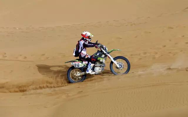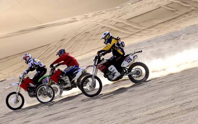 是的,在沙漠里根本辦法好好騎車,想要在沙漠里騎得快,要訣有兩點:別減速、看準路線,油門加大了后輪會瞬間陷下去,換擋慢了油門遲滯也會陷下去,減檔時發動機制動力起作用又會陷下去,還讓不讓人好好騎車了?