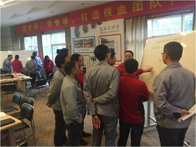 鑫源管理學院曹院長在研討會開始前結合自身經歷,與全體成員進行了經驗分享。之后,在曹院長的引導下,所有參訓學員分為三組,每個組針對農機公司現目前經營的焦點問題,層層剖析,找到解決問題的阻礙因素和解決措施。