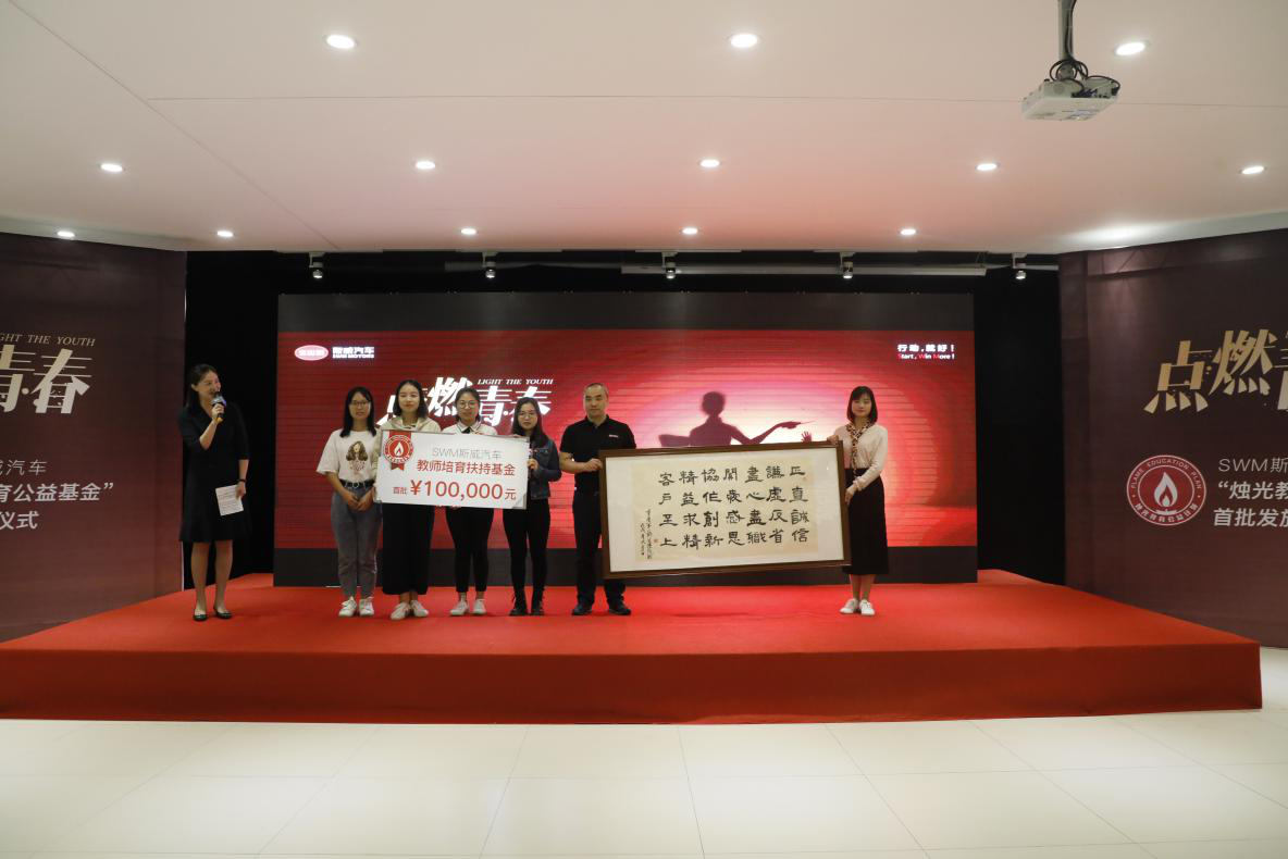 9月10日,“點燃青春·SWM斯威汽車‘燭光教育公益基金’發放儀式”,在SWM斯威汽車涪陵制造基地盛大舉行。SWM斯威汽車正式發放了首批“燭光教育公益基金”,同時發布“SWM斯威汽車教師專屬定制禮”,在教師節這個特殊節日里,為老師們送上了一份最有意義的節日問候。