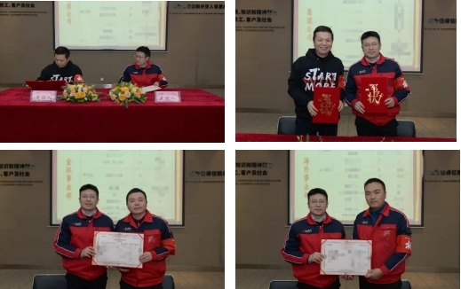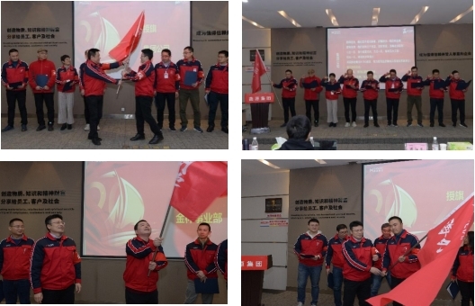 接著在振奮人心的背影音樂下,董事長與集團公司執行總裁、集團公司執行總裁與各業務單位總經理進行了軍令狀簽訂儀式,并完成授旗宣誓儀式。