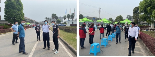 下午14:30,重慶高新區管委會王副主任在含谷鎮主要領導的陪同下,對鑫源集團檢測點的檢測工作進行了檢查,在聽取現場點位負責人的工作匯報后,對鑫源集團出色的組織能力及檢測效率表示了肯定,隨后王副主任對現場工作人員進行了慰問。